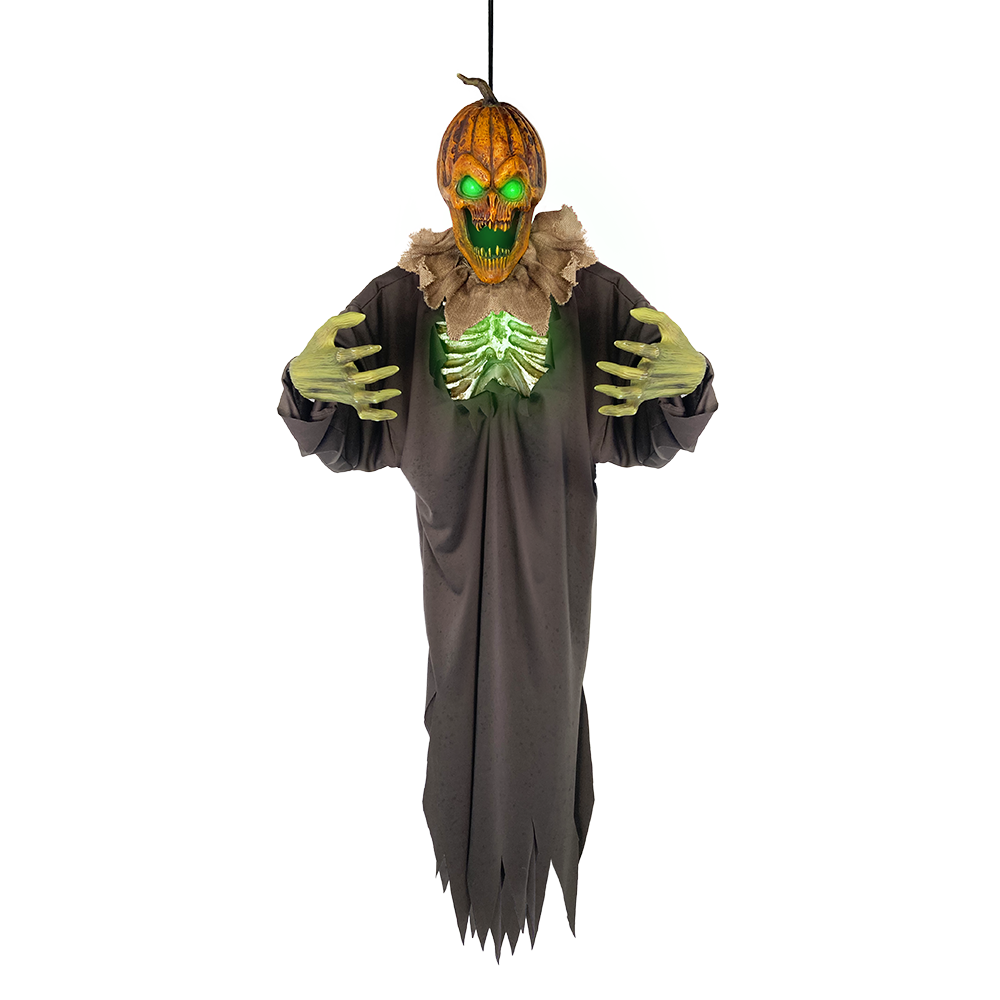 Hanging jack glows in the moonlight shrieking threats and bringing fright!